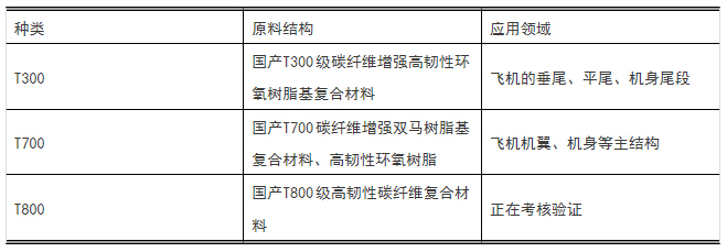 在第三代國(guó)產(chǎn)樹(shù)脂基材料達(dá)標(biāo)的基礎(chǔ)上,中航復(fù)材系統(tǒng)開(kāi)展了國(guó)產(chǎn)碳纖維樹(shù)脂基復(fù)合材料的工程應(yīng)用驗(yàn)證,如: