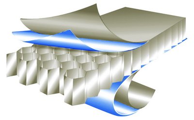 蜂窩板是由兩塊較薄的面板夾在中間的蜂窩狀材料制作而成。中間的材料可以鋁蜂窩、復(fù)合材料蜂窩(比如PP材料)等。有人所說(shuō)的蜂窩板中間是空的也就是因?yàn)槿绱恕?br /> 我們看看蜂窩板的優(yōu)缺點(diǎn):
