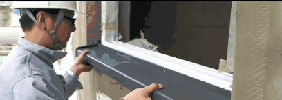 在窗口上沿安裝預(yù)制專用滴水巖,在窗臺上安裝專配的窗臺板。