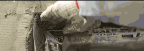 粘貼好預(yù)先貼上的翻包玻纖網(wǎng),
